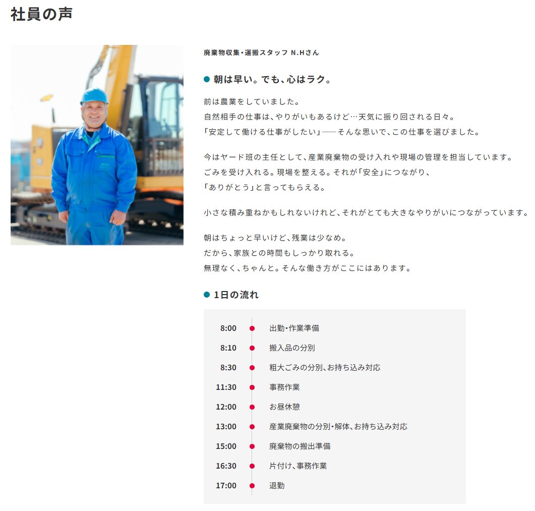 採用情報ページ「社員の声」の掲載例