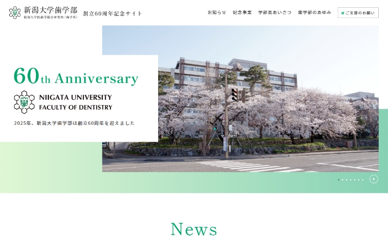 デザインでは、「知識」を象徴する青をメインカラーに設定。メインビジュアルには、「新潟県立大学」、「新潟」、「環日本海」を連想させるスライドを使用しています。