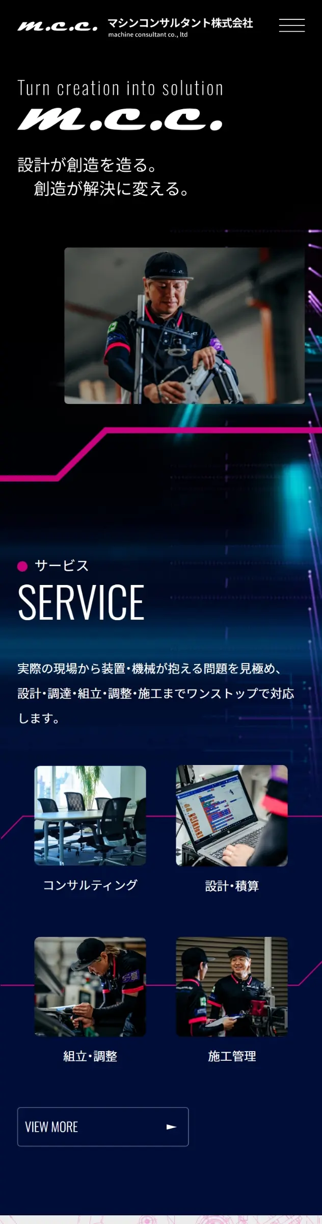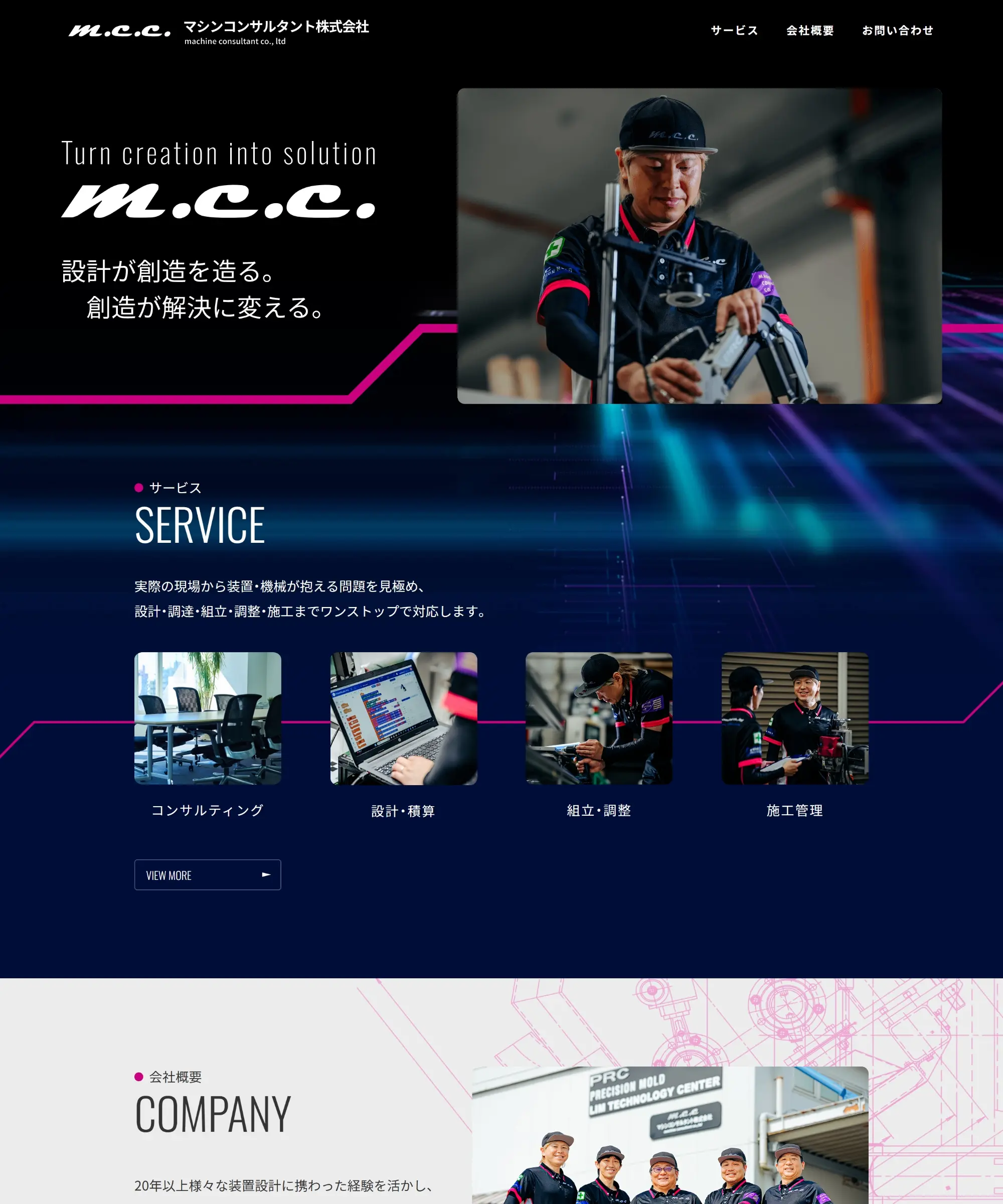 機械設計の専門性とスピード感を表現した、端的で力強いウェブサイト