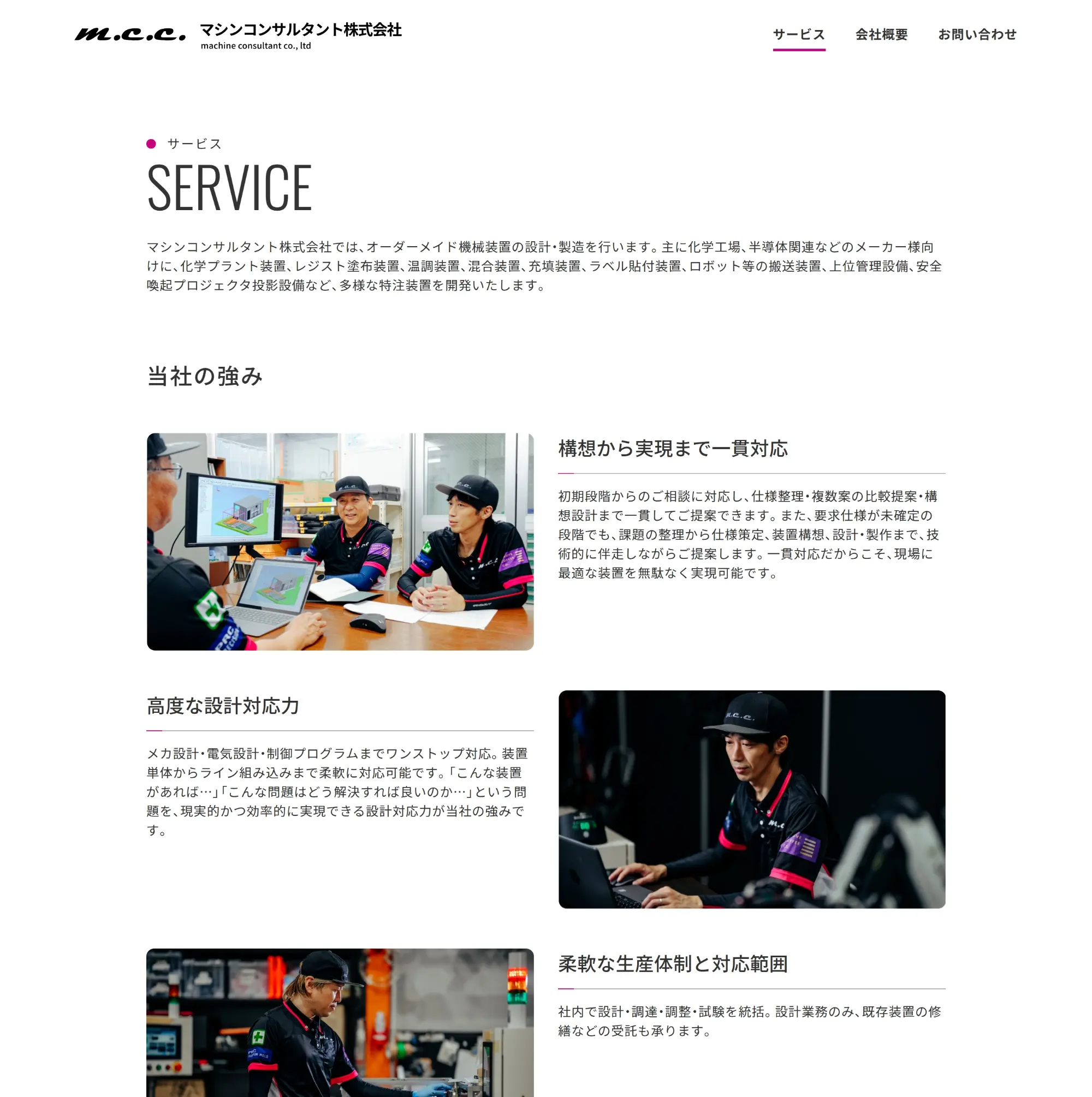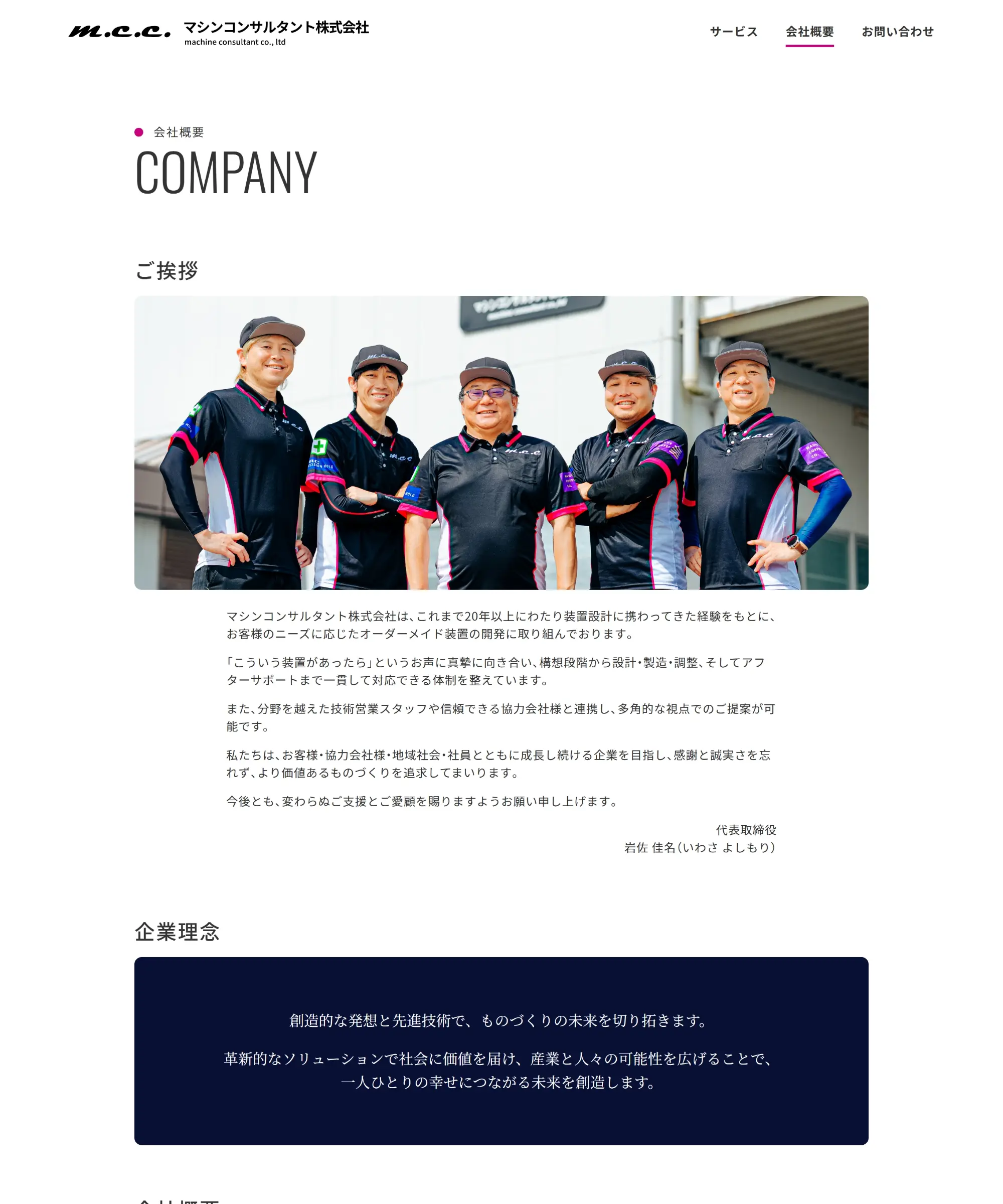 - ・会社概要や事業内容を明確に構成し、事業の特徴がシンプルに伝わるページを設計