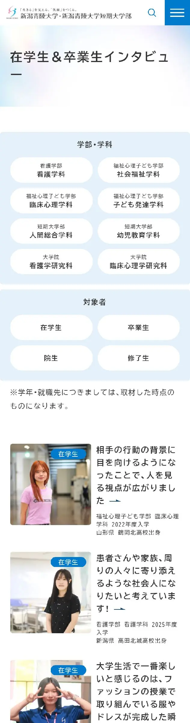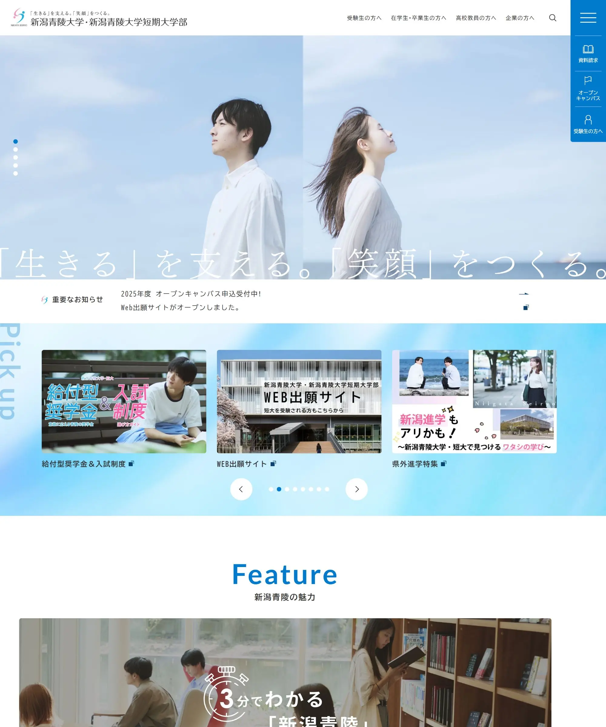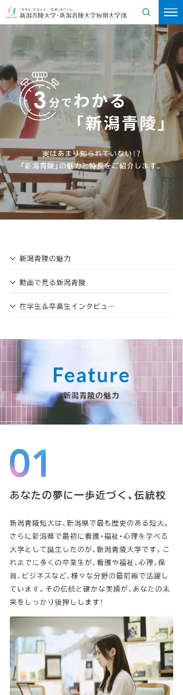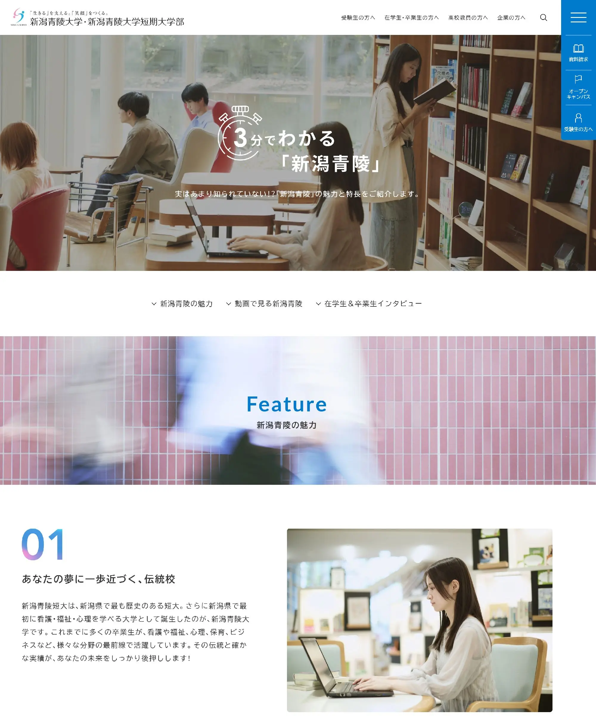 - ・「3分でわかる新潟青陵」「在学生・卒業生メッセージ」など、受験生が知りたい情報を強化