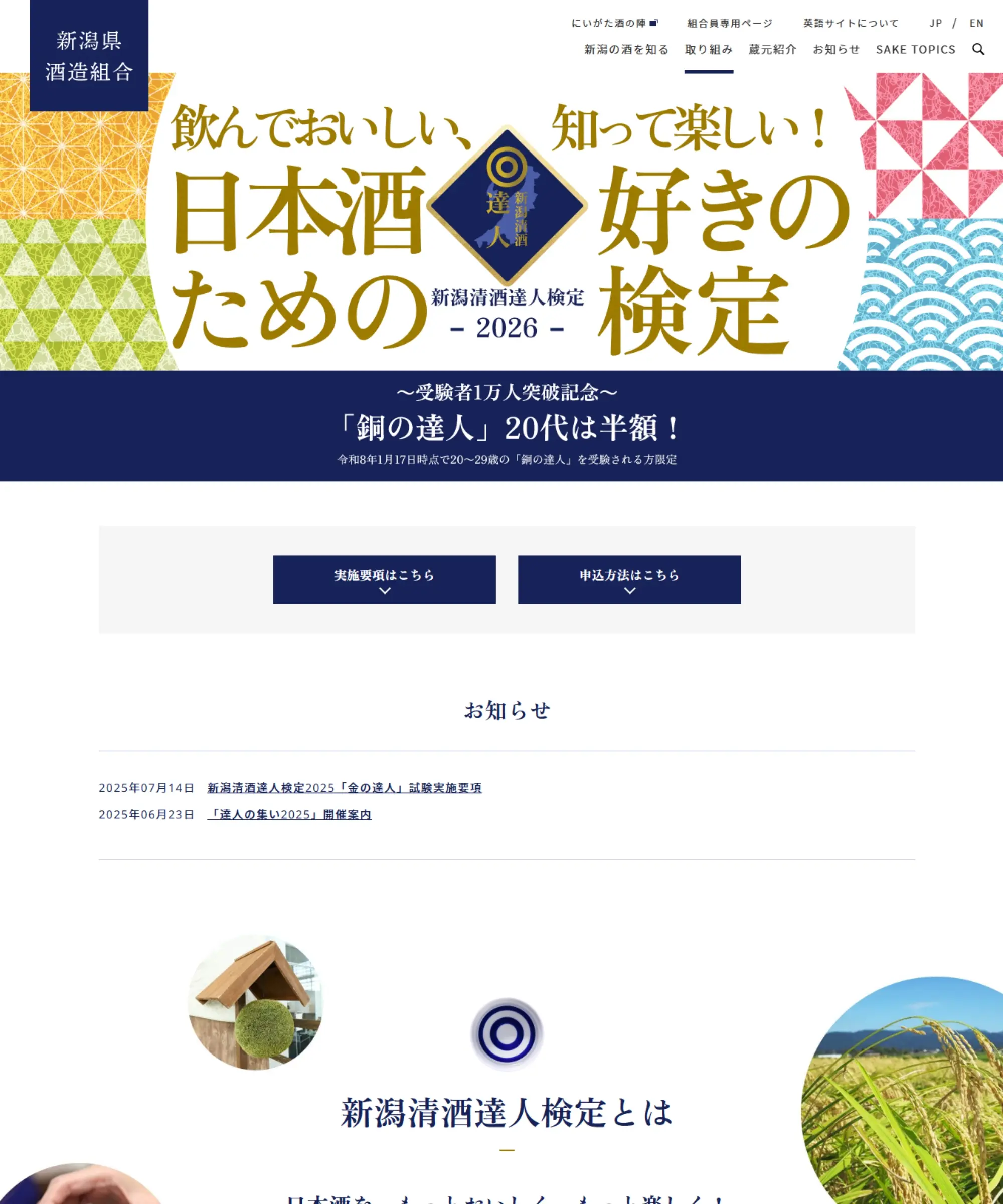 新潟清酒達人検定協会(新潟県酒造組合)様 新潟清酒達人検定サイト