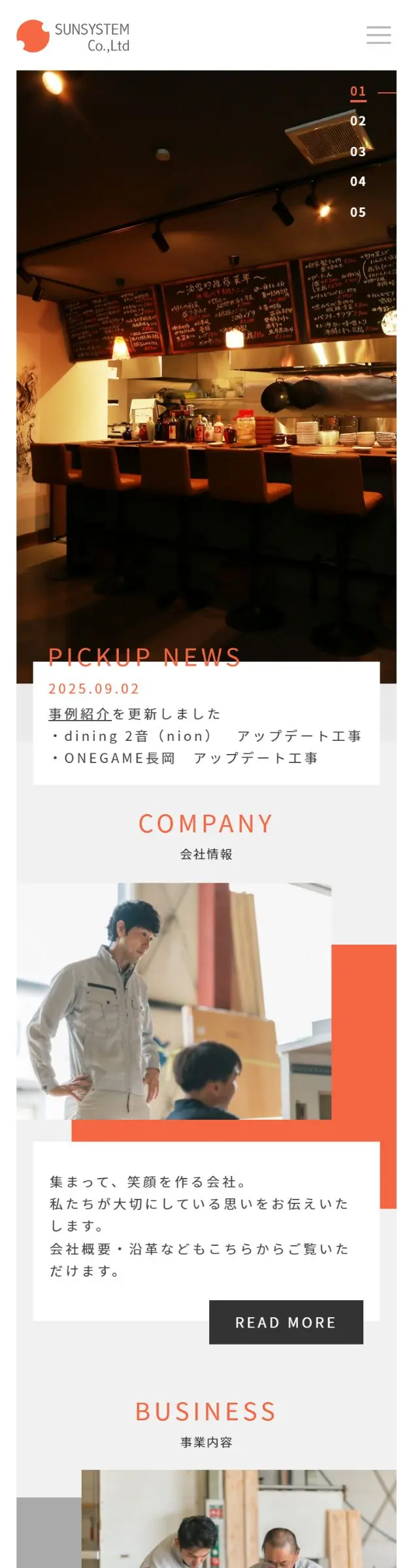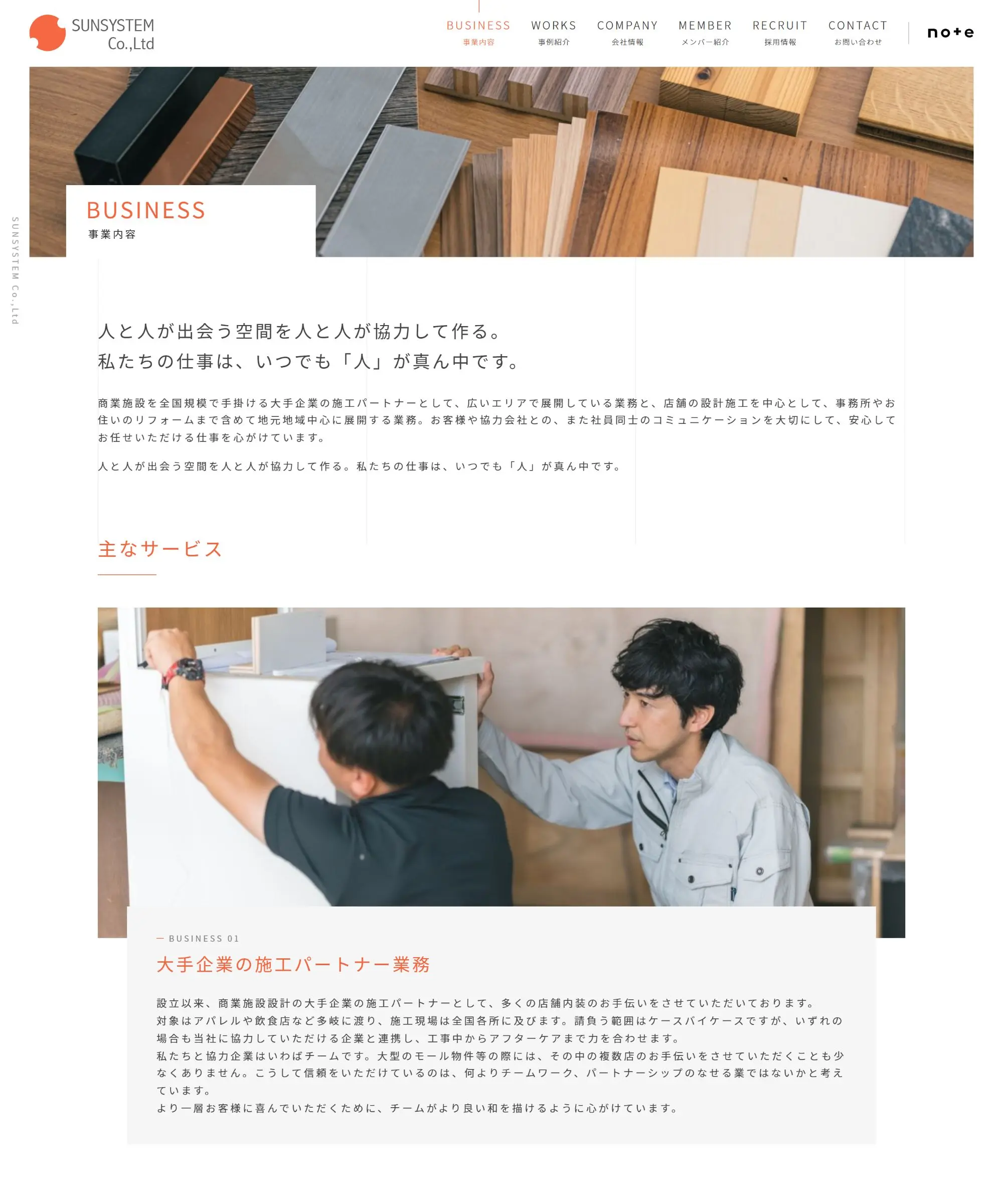 新潟県長岡市で商業施設の企画設計施工、内装工事一般、住宅家具・店舗什器の製作施工を行う株式会社サンシステム様のWebサイトです。