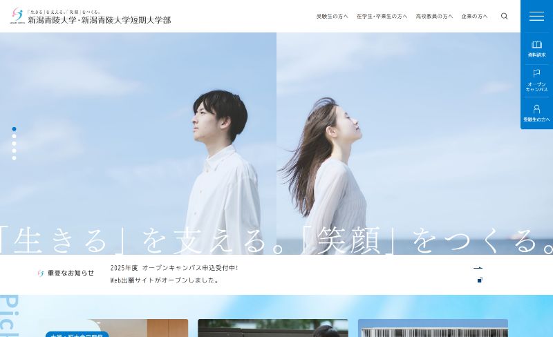 「国際性の涵養」「地域性の重視」「人間性の涵養」を基本理念に、様々な課題に対応できる人材の養成を目指す、公立大学法人新潟県立大学様の本学サイトです。